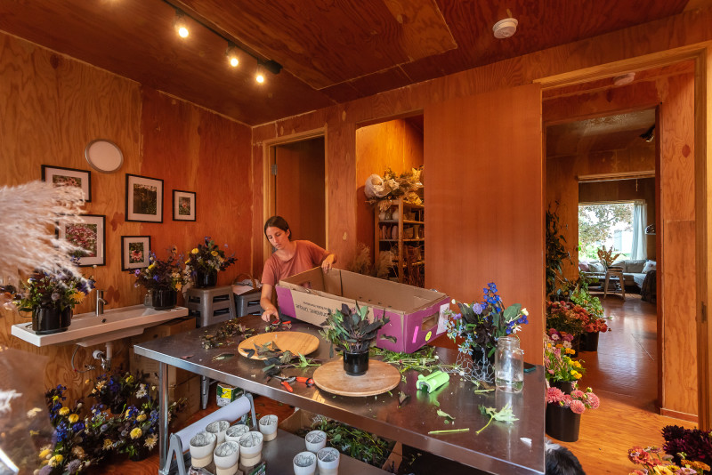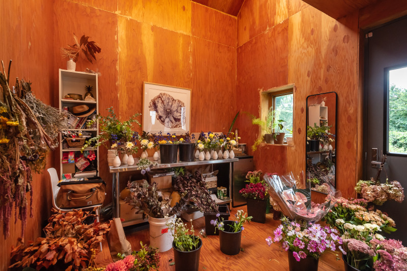 Shortly after purchasing the property, Kafka met Julia Griffin of Willa Rose Floral and began renovating the house to serve as her home and studio, with 12,000+ SF of the property serving as her flower farm.
