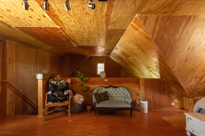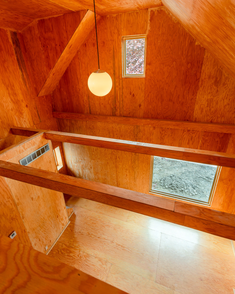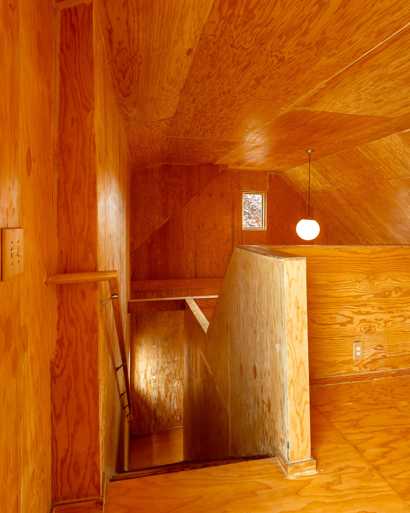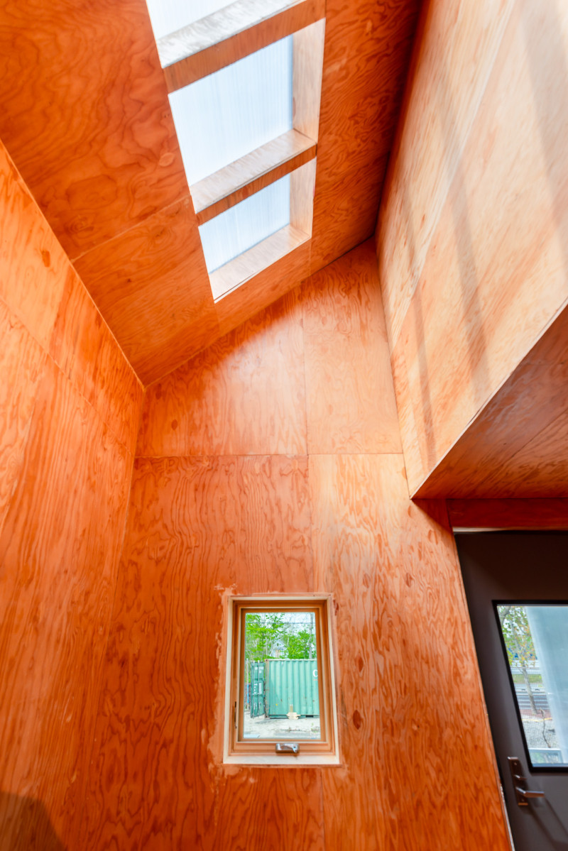 You enter into a generous wood cabin, double height (Chris Miele, 2019)
