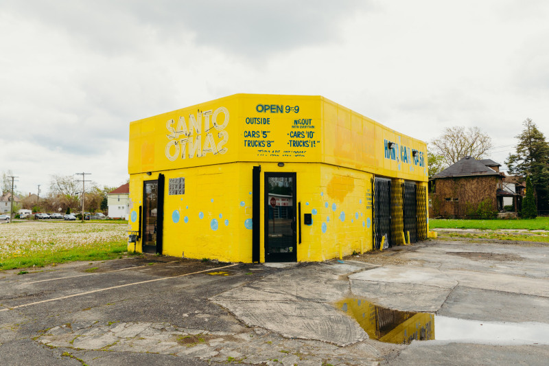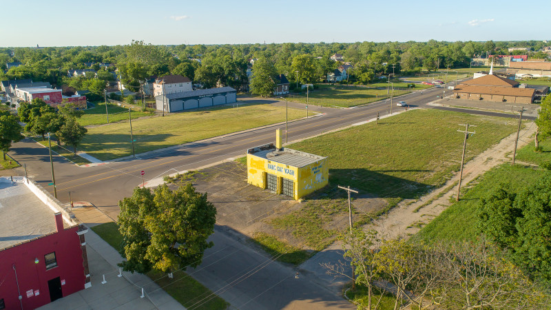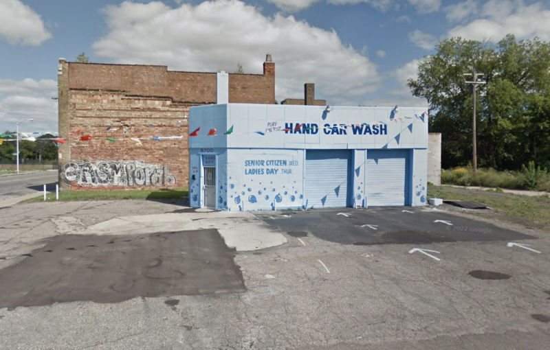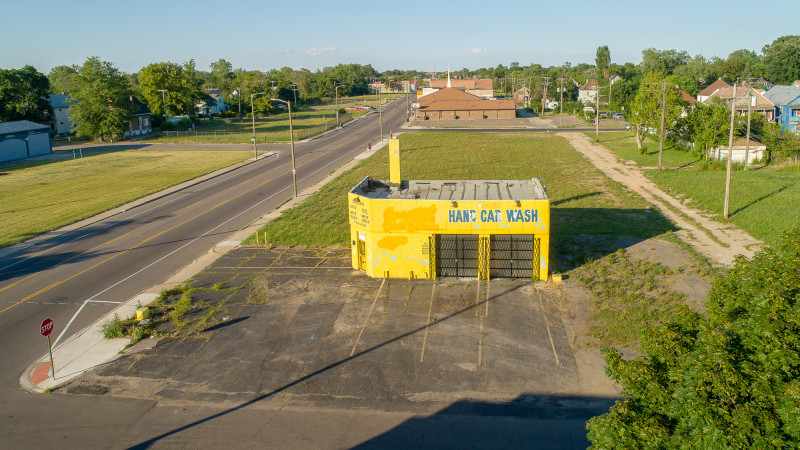 8700 Mack Ave, a 1,100 SF abandoned car wash on a 5,000 SF lot.