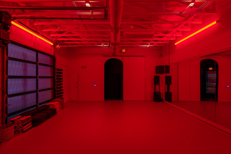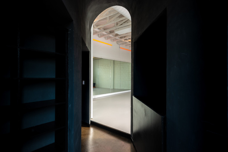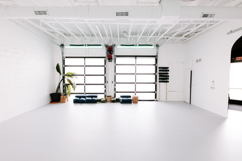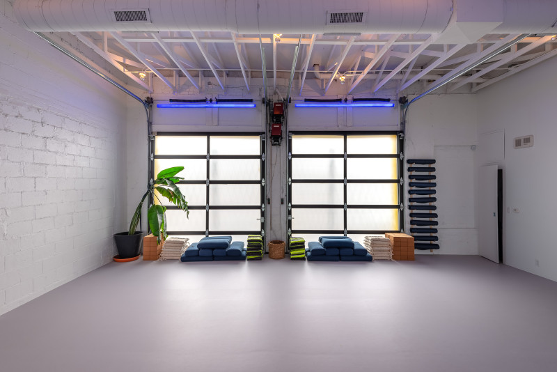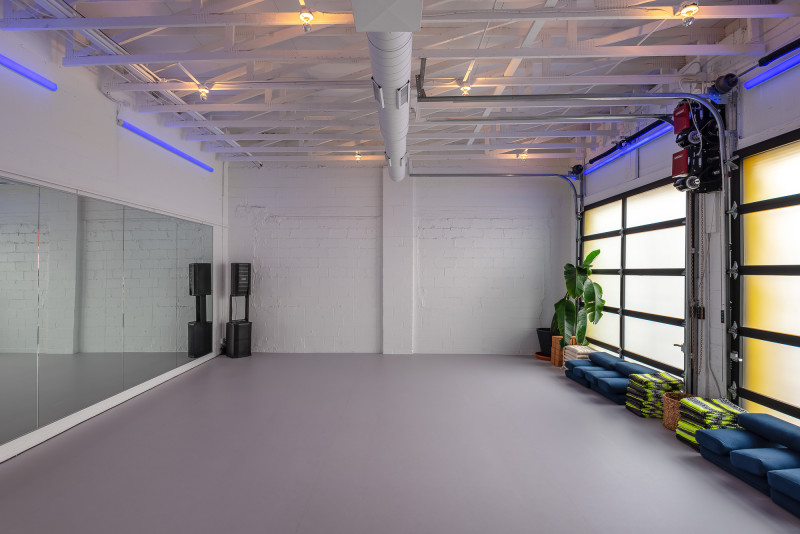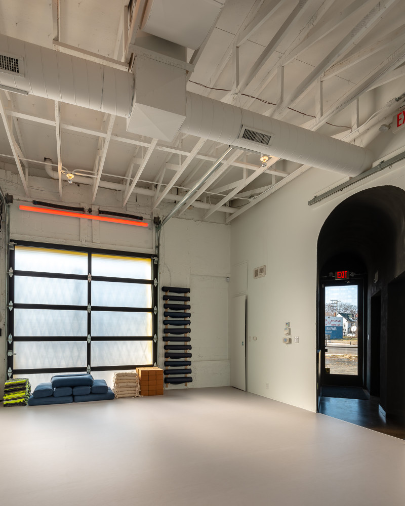 We left the exterior, for the most part, as-is, but clean white walls, a pristine linoleum studio floor, and thoughtful lighting created a serene, perfectly proportioned studio space. Two small rooms in the front offered additional services.