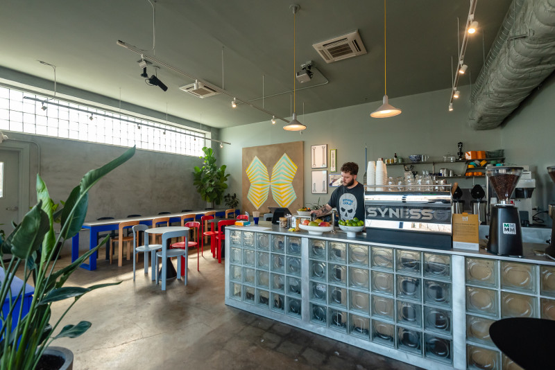 I started fixing up the building without a plan, then Ish and I started working together, then I met Brad and Courtney who had a Thai food truck... Ish and I amended our open kitchen, all booth diner design, to a Thai restaurant from a dystopian future design. KATOI opened as an absolute sensation.