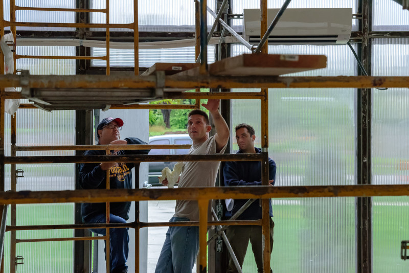 End walls were welded on site. Steel tube, angle irons and Poly-Carbonate (2016, Chris Miele)